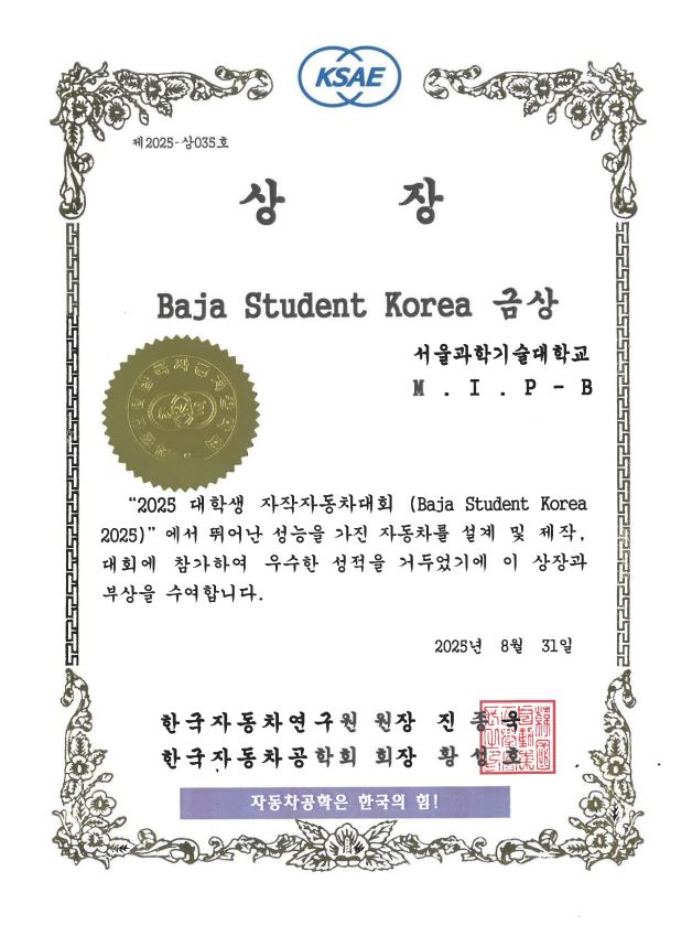 | 제목 | [MIP-B] 「2025 대학생 자작자동차대회」Baja Student Korea 금상 수상 | ||||