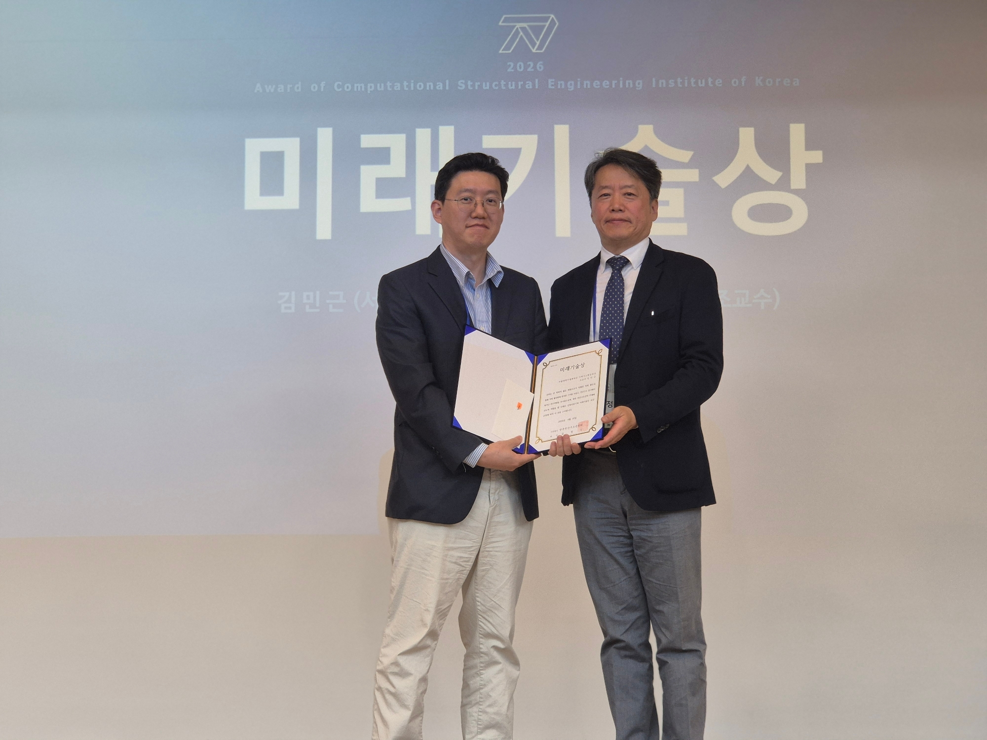 김 교수는 한국전산구조공학회로부터 45세 이하 회원 중 학회의 진보 발전에 공헌하고 전산구조 분야에서 뛰어난 연구역량을 보여줌으로써, 향후 전산구조공학 미래에 선도적 역할을 할 인재로 선정되어 이번 미래기술상 수상의 영예를 안았다. 이번 상을 수여한 한국전산구조공학회는 국내 최초의 구조공학 전문 학술단체로 1988년 창립했으며, 현재 2,000명 이상의 정회원이 소속된 대형 학술단체이다. 해당 단체는 토목, 건축 등 건설 분야와 기계, 조선, 항공 등 범기계 분야의 구조공학자가 모여 다양한 학제를 넘나들며 융합 학술 활동을 지향하는 해당 분야 국내 유일 학술단체이다.