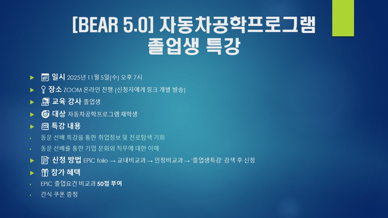 2025년도 BEAR 5.0 자동차공학프로그램 졸업생 특강(온라인)