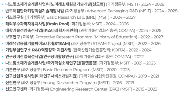 ▲ 반도체 패키징, 나노소재, 배터리, 인공지능 관련 국가R&D과제 수행 中